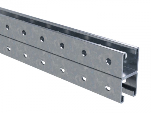 С-образный профиль изготовлен из стали толщиной 2 мм. Он имеет длину 1400 мм. Элемент этого типа может применяться для крепления в подвес или к стене, монтажа консолей, подвеса на шпильках, а также в качестве кабеленесущих систем для осветительных трасс.