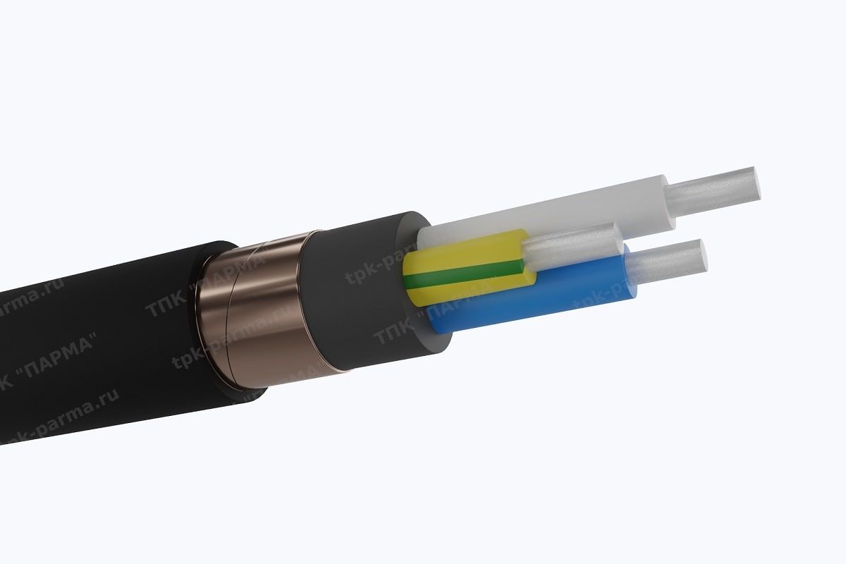 Экран из медных проволок и спирально наложенной медной ленты или медной фольги (в зависимости от конструкции кабеля)