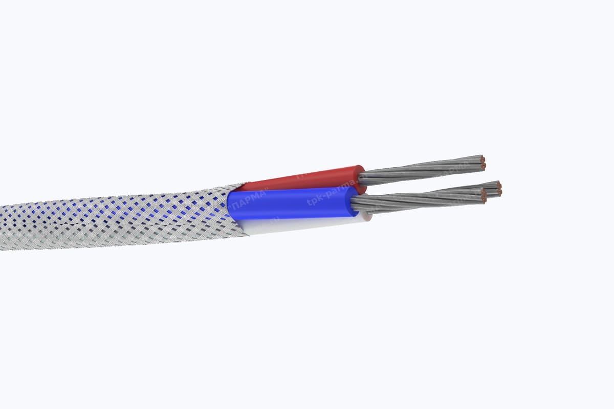 1. Две многопроволочные медные лужёные токопроводящие жилы с площадью номинального поперечного сечения 0,2 мм2, соответствующие 4 классу по ГОСТ 22483-2012.